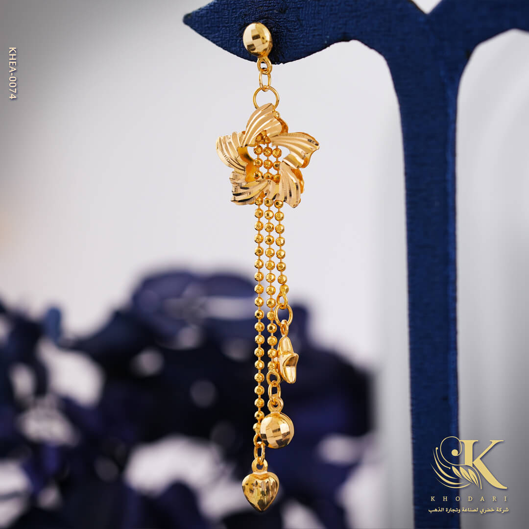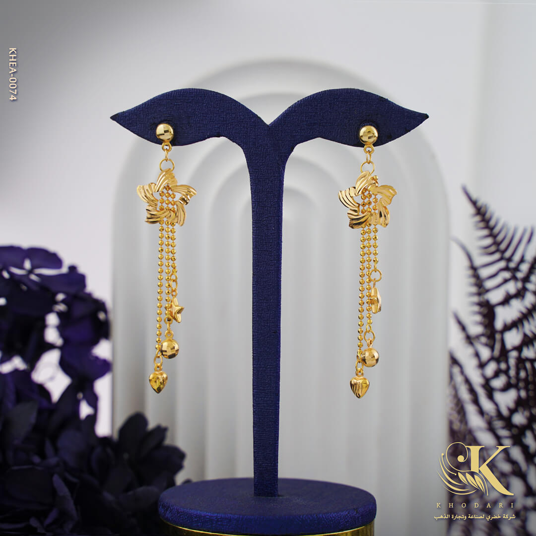 قرط ذهبي عيار 21 قيراط بتصميم أنيق