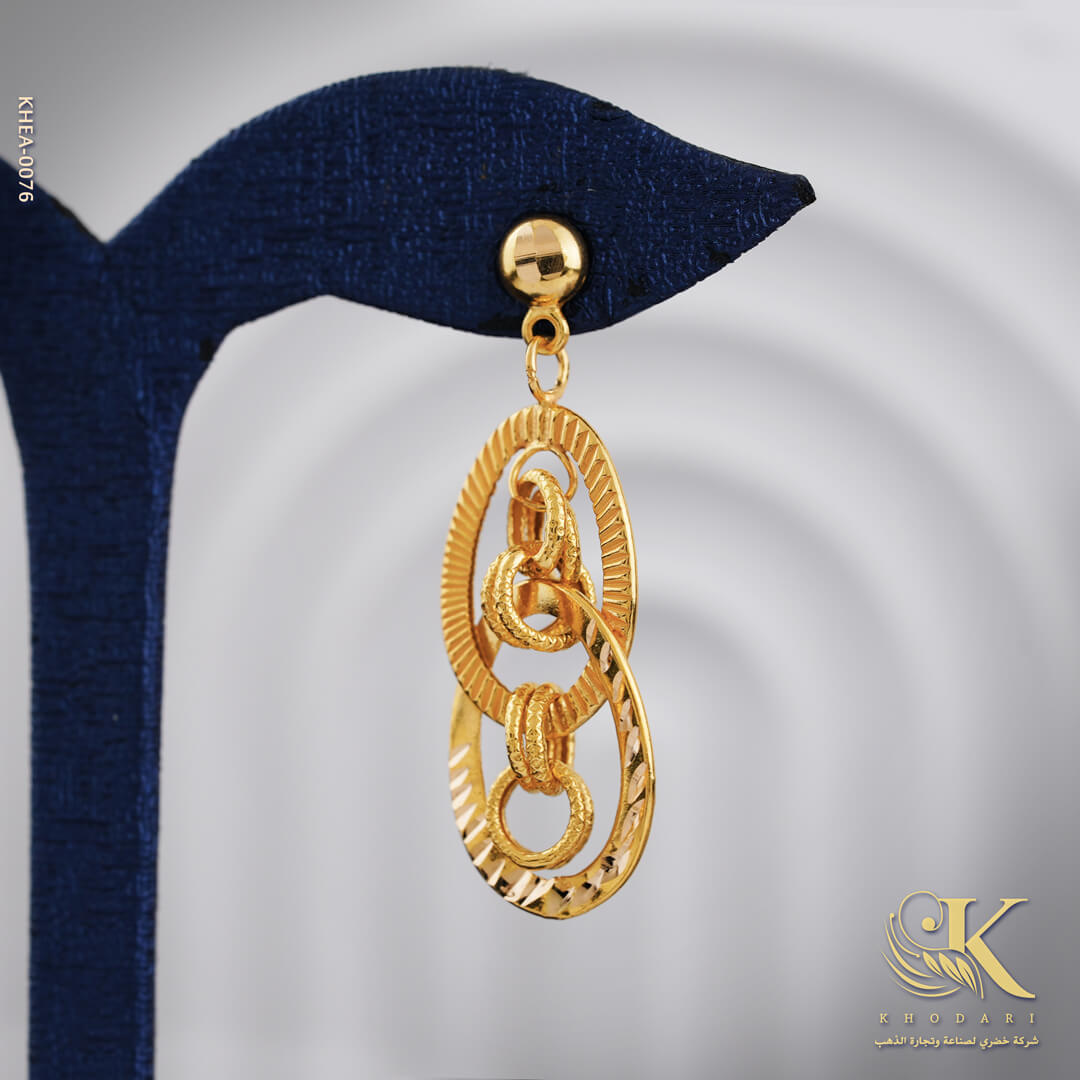 قرط ذهبي عيار 21 قيراط بتصميم أنيق