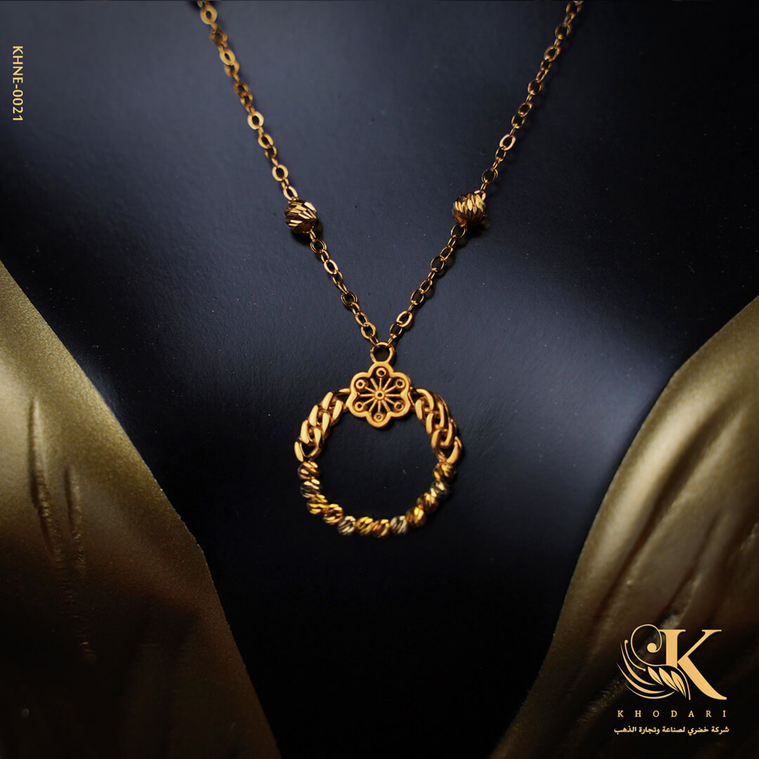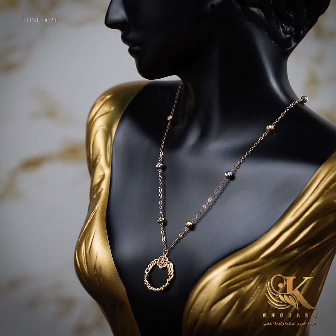 عقد ذهبي فاخر يعكس الأناقة والفخامة، مصنوع بدقة واهتمام ليضفي لمسة من الجمال على إطلالتك