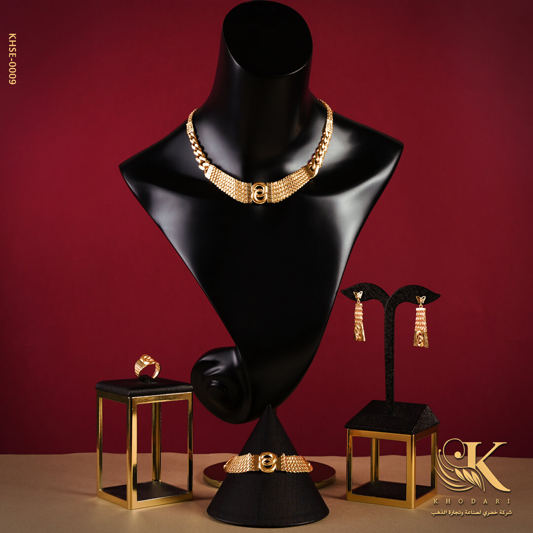 طقم ذهب عيار 21 بتصميم أنيق يناسب جميع المناسبات