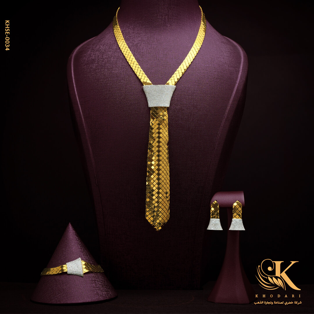 طقم ذهب (عقد + حلق + اسوارة + خاتم)