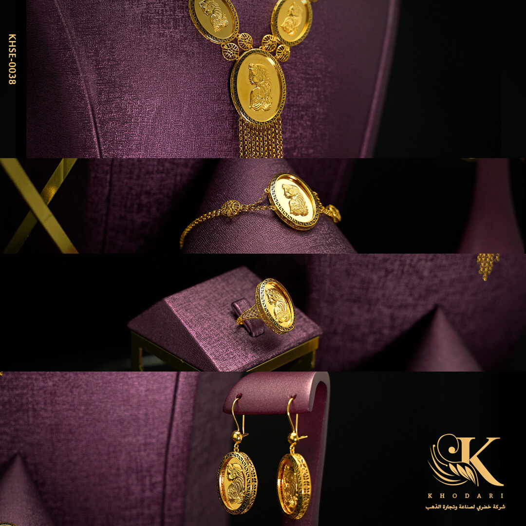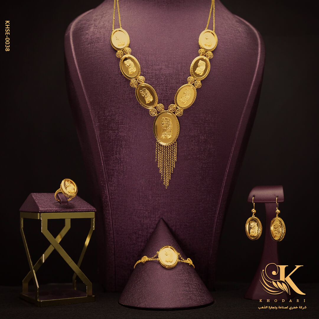 طقم ذهب (عقد + حلق + اسوارة + خاتم)