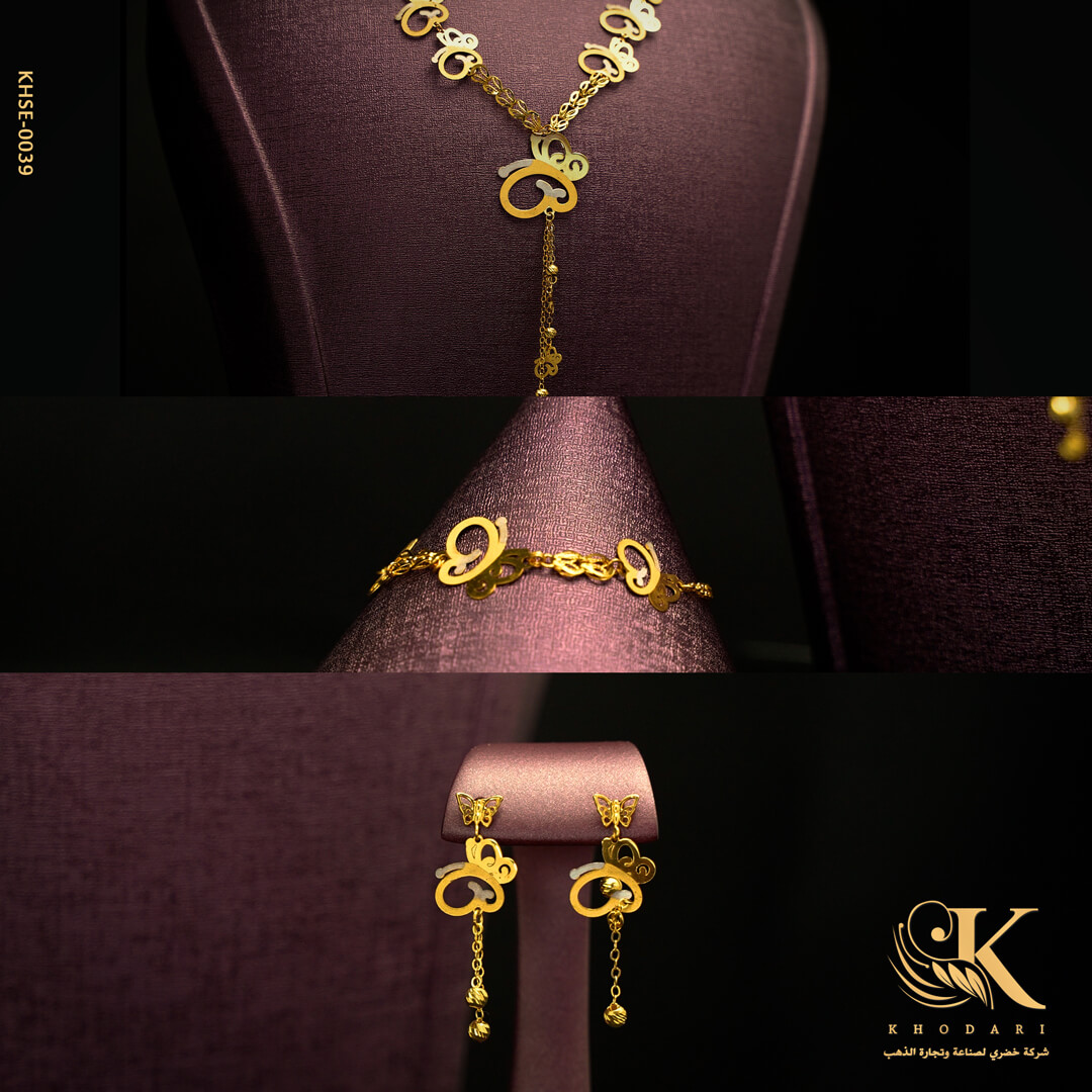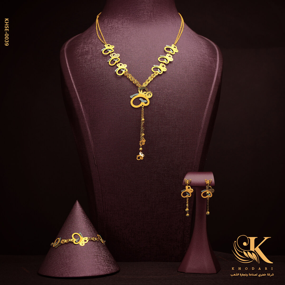 طقم ذهب (عقد + حلق + اسوارة + خاتم)
