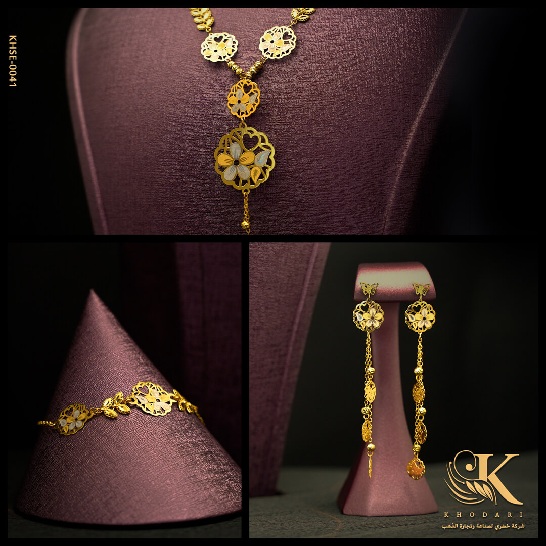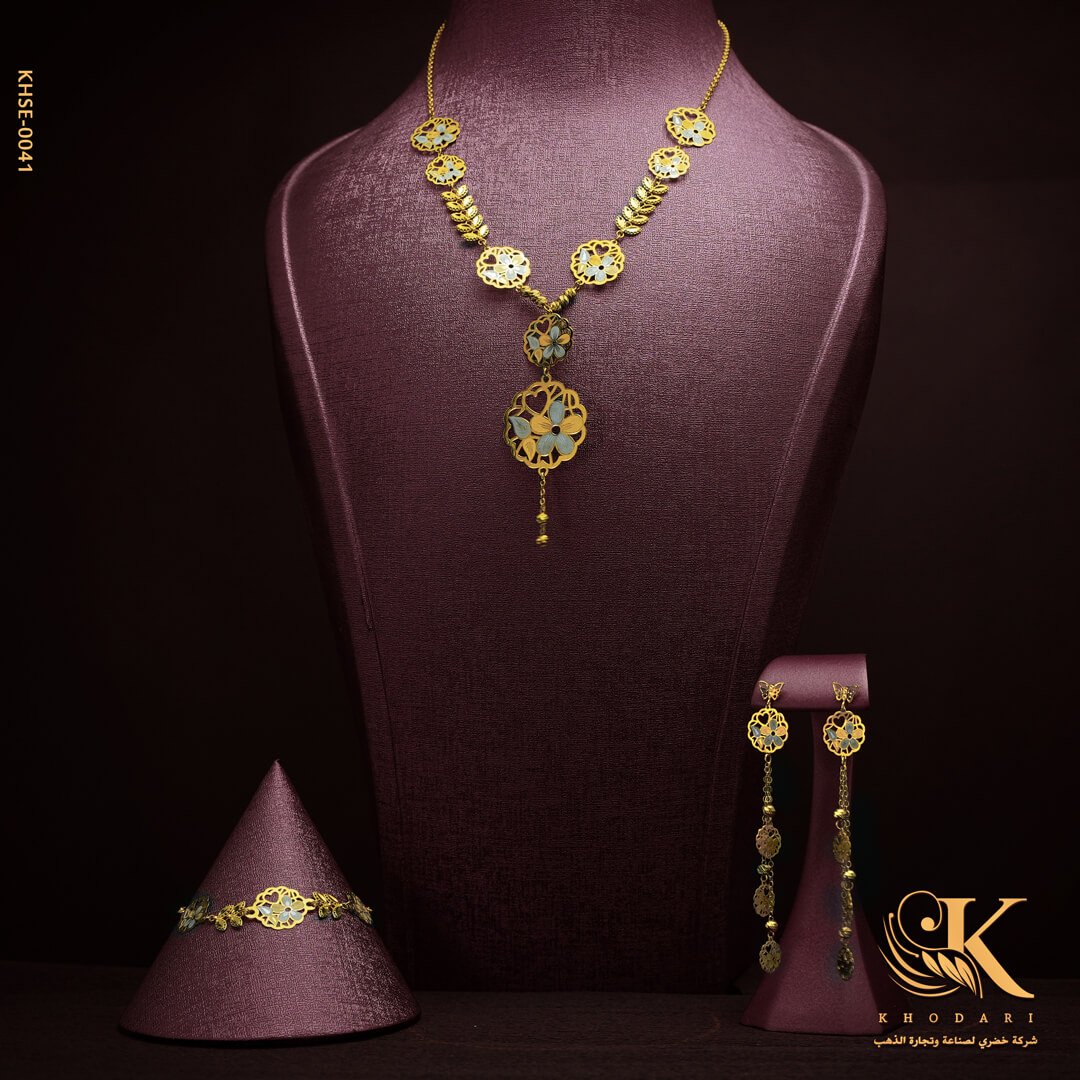 طقم ذهب (عقد + حلق + اسوارة + خاتم)