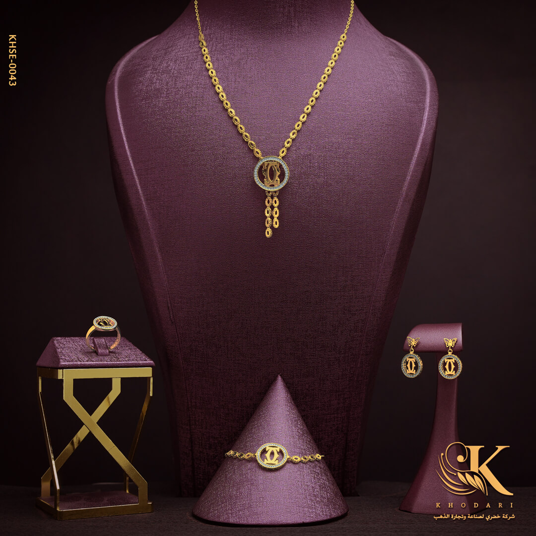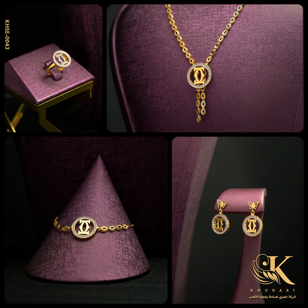 طقم ذهب (عقد + حلق + اسوارة + خاتم)