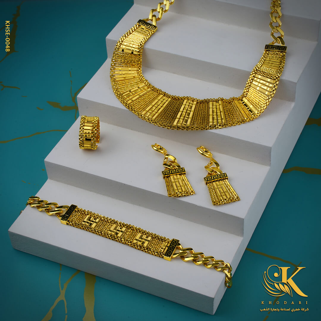 طقم ذهب (عقد + حلق + اسوارة + خاتم)
