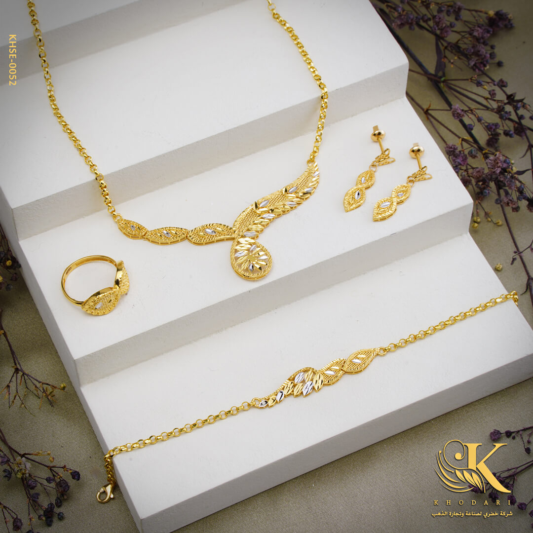 طقم ذهب (عقد + حلق + اسوارة + خاتم)