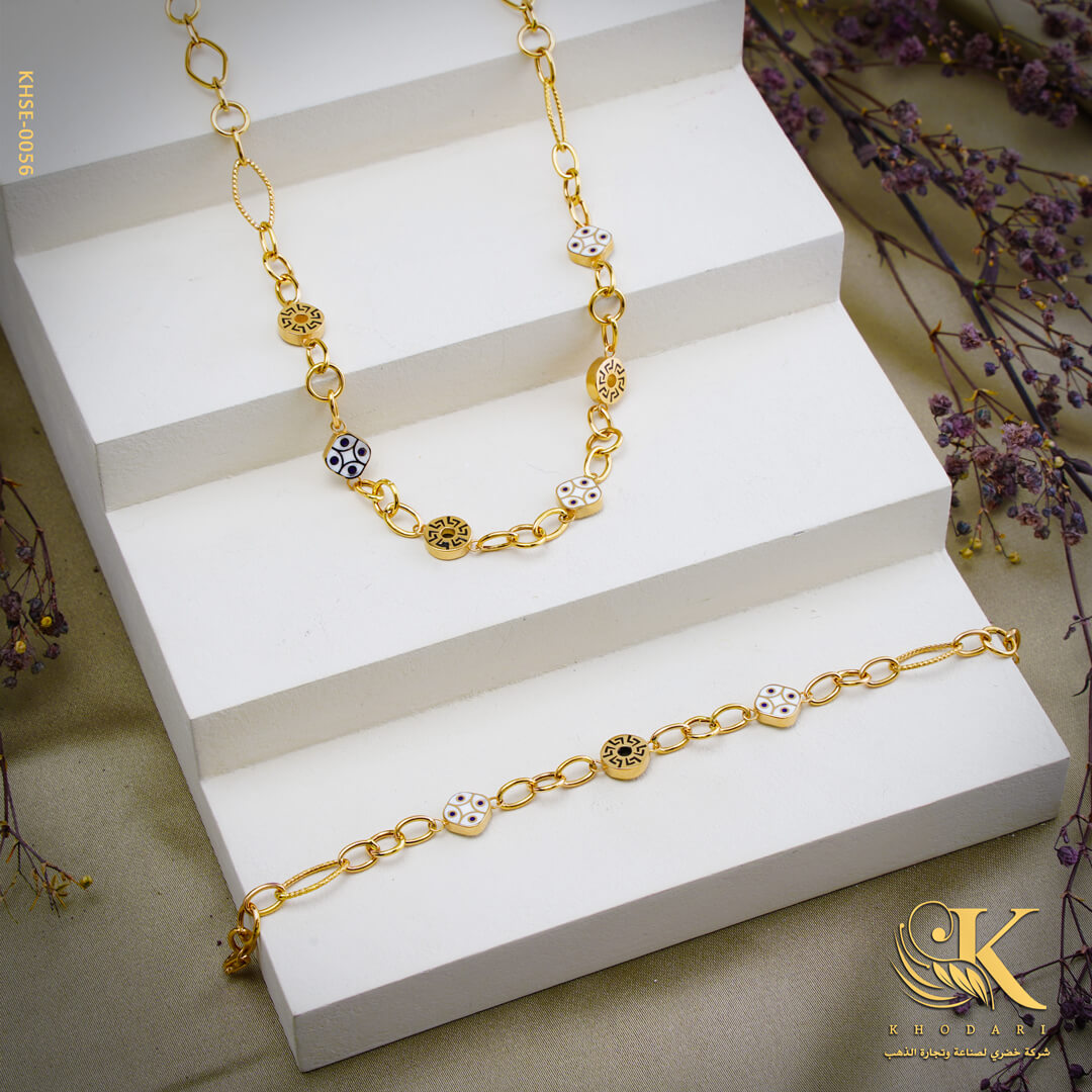 طقم ذهب (عقد + حلق + اسوارة + خاتم)
