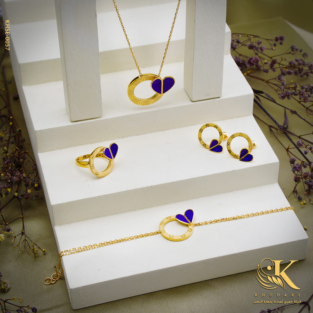 طقم ذهب (عقد + حلق + اسوارة + خاتم)