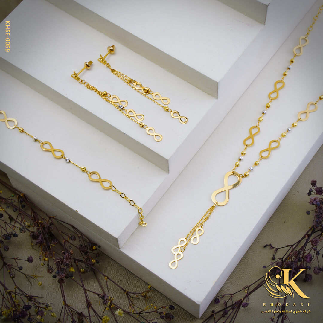 طقم ذهب (عقد + حلق + اسوارة + خاتم)