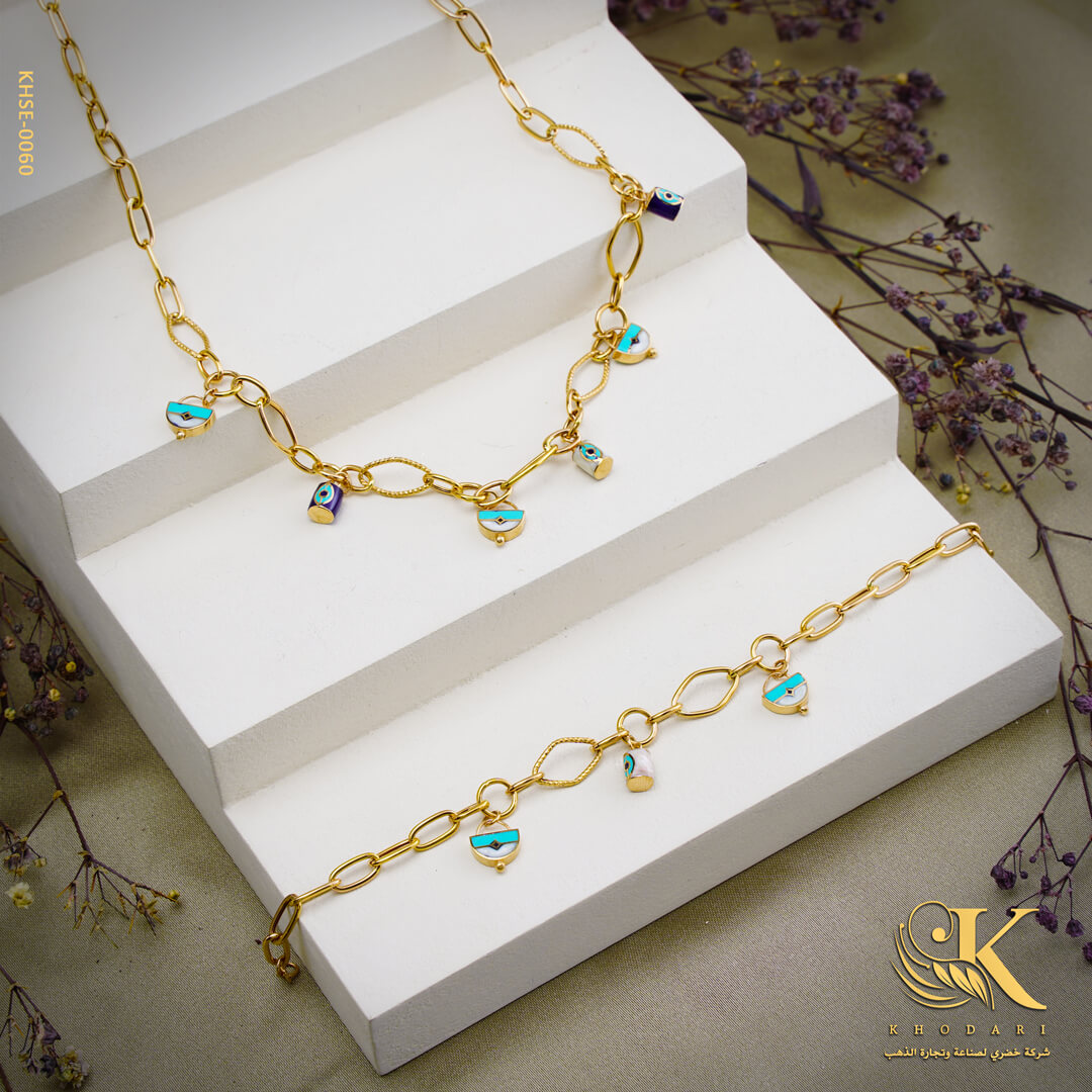 طقم ذهب (عقد + حلق + اسوارة + خاتم)