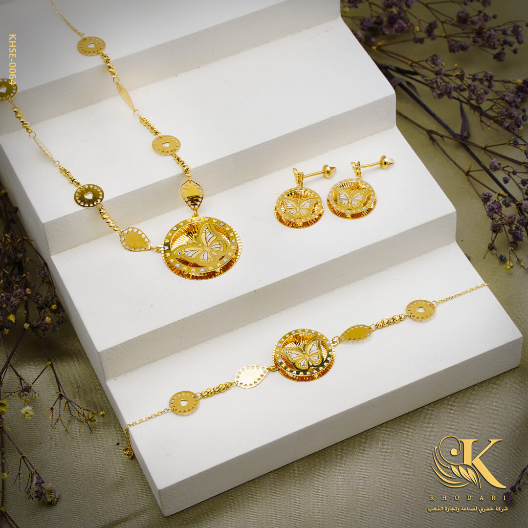 طقم ذهب (عقد + حلق + اسوارة + خاتم)