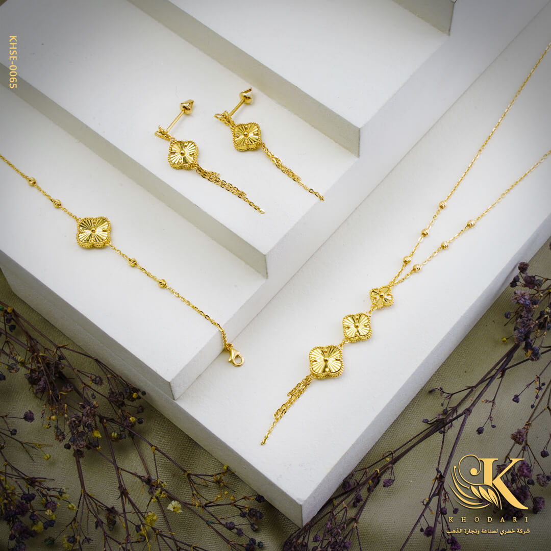طقم ذهب (عقد + حلق + اسوارة + خاتم)